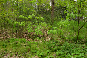 2-3: junge Lindentriebe (Tilia spec.): Deutschland, Niedersachsen, Gemeinde Uetze, Dorf Schwüblingsen, Burgdorfer Holz, 65 m, 3. Mai 2017 (Fotos: Tina Schulz)
