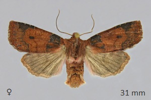 8: ♀, Deutschland, Baden-Württemberg, 78176 Blumberg, Ortsrandlage, Südhang, mit viel Grün in den Gärten, in Waldnähe (Buchen-Mischwald, Waldrand mit anschließendem Trespen-Halbtrockenrasen auf Kalk), 720 m, 1. Oktober 2013, am Licht (leg. det. & Foto: Hans-Peter Deuring)Forum