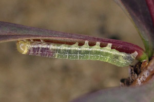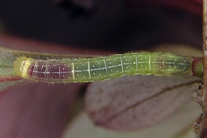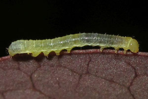 6: L2, 5 mm: Deutschland, Niedersachsen, Rodenberg, 90 m, Raupe nachts an Berberis thunbergii 'Atropurpurea' (Berberitze) geleuchtet, 5. Mai 2015 (cult. ad imaginem & fot.: Tina Schulz), det.: Thomas Fähnrich & Tina SchulzForum