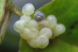 1-3: Deutschland, Niedersachsen, Rodenberg, 90 m, ♀ am Hauslicht 6. März 2017, darauffolgende Eiablage, Zuchtfotos 9. Juli 2017 (cult., det. & fot.: Tina Schulz)