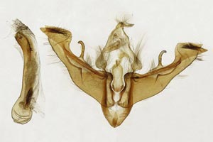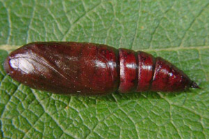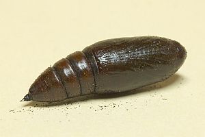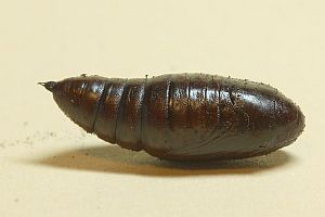 Antitype chi und Orthosia gothica kann man als Raupe an der Stellung der Stigmen unterscheiden: Bei A. chi durchgehend am oberen Rand des weißen Seitenstreifens, bei O. gothica hingegen liegen die Stigmen (außer vorne und hinten) mitten in diesem weißen Seitenstreifen. Text: Erwin Rennwald im [Forum].