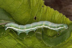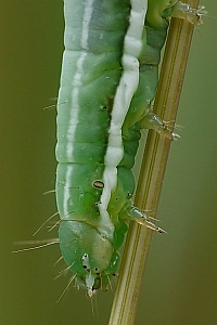 Es gibt viele grüne Eulenraupen, besonders häufig und einander ähnlich sind die folgenden: