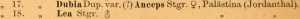 - Staudinger, O. (1898): Neue Lepidopteren aus Palaestina. — Deutsche Entomologische Zeitschrift Iris 10 (2): 271-319, pl. IX.