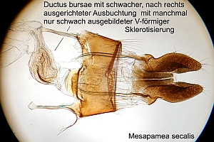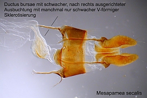 Vergleich der weiblichen Genitalien: Mesapamea secalis und M. secalella