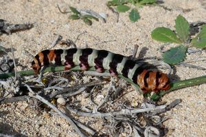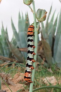 2-5: Spanien, Kanarische Inseln, Lanzarote, 1km südöstlich Mala, 35 m, Raupe am 28. Dezember 2024 (cult. & fot.: Egbert Friedrich)