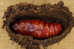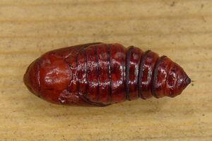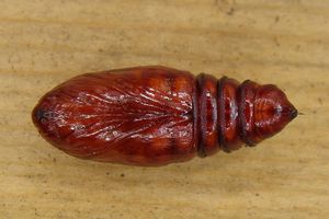 1: ♀, Spanien, Kanarische Inseln, Fuerteventura, Corralejo, Armin Hemmersbach leg. Raupen am 13. März 1999 (Fotos: Armin Hemmersbach), cult. e.l. & det. Armin Hemmersbach