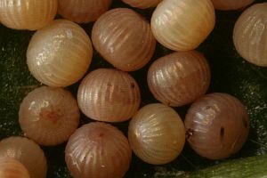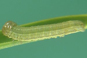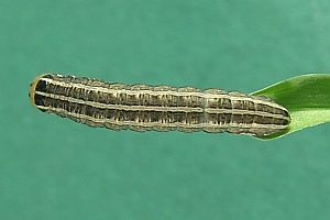 "Aus Raupen mit hellem Kopf und fast einfarbig hellen, sich stark von der Grundfarbe der Raupe absetzenden Dorsalen und Subdorsalen erhielt ich immer Tholera decimalis, aus solchen mit dunklem Gitternetz auf dem Kopf und weniger stark kontrastierenden Dorsalen und Subdorsalen T. cespitis."
