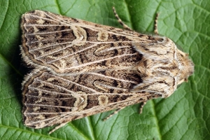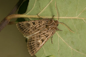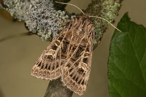 Die Tholera decimalis- ♂ ♂ mit den stark gefiederten Fühlern sind auf den ersten Blick von Naenia typica und von Sideridis reticulata zu trennen.