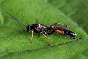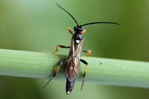 2-4: Schlupfwespe (Ichneumonidae), Russland, Oblast Moskau, Bezirk Serebrjanyje Prudy, Dorf Lischnyagi, Wiese, Raupe leg. 3. Mai 2016, Foto 21. Mai 2016 (leg., cult. & fot.: Andrey Ponomarev), det. Parasitoidenfamilie Helga Becker im [Entomologie Forum]