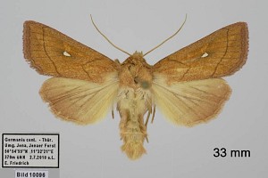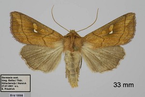 7: ♂, Deutschland, Sachsen, Noitzscher Heide bei Lindenhayn, Rand einer Kiesgrube, Raupenfund am 29. April 2010 in vorjährigen Beifußstängeln (Tagesversteck), verpuppt um den 20. Mai 2010, e.l. 13. Juni 2010 (leg., cult., det. & Foto: Heidrun Melzer)