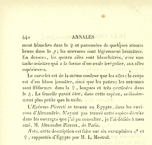 - Erstbeschreibung: Bugnion, C. (1837): Description de quatre nouvelles espèces de Lépidoptères de la Syrie et de l'Égypte. — Annales de la Société Entomologique de France 6: 439-444 + pl. 16. Paris (F. G. Levrault).