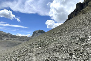 9: Schweiz, Bern, Adelboden, Engstligenalp, Kindbettipass-Ostseite, 2580 m, vegetationslose Schutthalde, 2. August 2022, mittags bei Sonnenschein (det. & Studiofoto: Martin Albrecht), conf. Daniel BartschForum