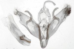 1: Genitalpräparat des als Lebendfalter 9 abgebildeten ♂, Österreich, Steiermark, Ponigl bei Weiz, Mähwiese in Forstgebiet, am Licht, ca. 850 m, 1. Juli 2018 (det., präp. & Foto: Horst Pichler)Forum