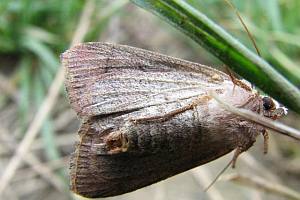6: Deutschland, Baden-Württemberg, Altvogtsburg im Kaiserstuhl, Badberg, 21. April 2011 (det. & Freilandfotos: Georg Paulus) - Die bis zum 6. Januar 2021 aus demselben Forums-Faden stammende [Raupe] ist vermutlich Eugnorisma glareosa [Korrektur].Forum