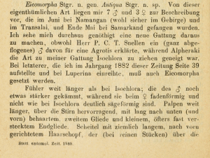 - Erstbeschreibung: Staudinger, O. (1888): Centralasiatische Lepidopteren. — Entomologische Zeitung 49: 1-65. Stettin.