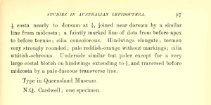 - Original description: Turner, A. J. (1911): Studies in Australian Lepidoptera. — Annals of the Queensland Museum 10: 59-135.