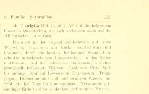 Antoshin & Zolotuhin (2011) gestehen dem Taxon Artrecht zu. Es wurde zunächst nicht als Art oder Unterart, sondern infrasubspezifisch als Individualform „Lemonia taraxaci ab.♀ strigata“ beschrieben. Der Beschreiber, Rebel (1910: 131), nennt als Fundort: „Zara“, also die italienische Bezeichnung der Küstenstadt Zadar ganz im Süden von Kroatien. Die Differentialdiagnose zur Nominatform lautete: „Vfl mit dunkelgrauem hinterem Querstreifen, der sich verloschen auch auf die Hfl fortsetzt.“ Nach Ansicht von Antoshin & Zolotuhin (2011) verwendeten erstmals Rougeot & Viette (1978) den Namen im Rang einer Subspezies, machten ihn also nomenklatorisch wirksam, weshalb sie als Autoren der Unterart oder Art gelten müssten. Mir erscheint es allerdings zweifelhaft, ob man diese Deutung so akzeptieren muss, denn Rougeot & Viette (1978) selbst verwendeten trinäre Namen für alles unterhalb der Artebene, keineswegs nur für das, was sie selbst als Unterart ansahen. So heißt es gerade bei Lemonia taraxaci (in der deutschen Übersetzung (Rougeot & Viette 1983)): „L. taraxaci terranea Rothschild 1909 ist eine Individualform …“. Wenn sie Unterarten akzeptiert haben, dann haben sie für sie ansonsten einen kompletten Steckbrief angelegt, so z.B. für Syntomis phegea ligata, Syntomis marjana quercii, Smerinthus ocellatus protai und auch bei Lemonia philopalus rungsi und Lemonia philopalus vazquezi. Und jene Taxa finden sich dann auch alle in der „Artenliste (mit Familienangaben) und ihre wesentlichen Subspezies“ (S. 33 ff.). Lemonia taraxaci strigata ist auch dort nicht dabei, was bedeutet, dass die Autoren darin zumindest keine „wesentliche“ Subspezies sah, wahrscheinlich eben gar keine. Möglicherweise muss das Taxon also Lemonia strigata Antoshin & Zolotuhin, 2011 heißen – wenn es nicht zwischenzeitlich noch einen anderen Namen und/oder einen anderen Autor bekam.