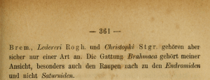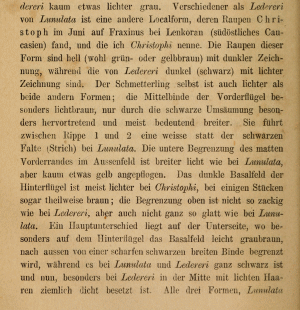 - Erstbeschreibung: Staudinger, O. (1878-1879): Lepidopteren-Fauna Kleinasien's. — Horae Societatis entomologicae Rossicae 14: 176-482. St. Pétersbourg (V. Besobrasoff & Comp.).
