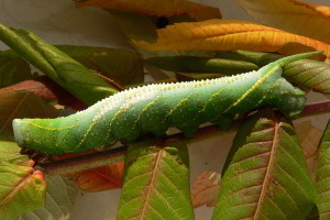 1-2: Eiraupe und halbwüchsige Raupe, Vietnam (weitere Daten unbekannt), cult. an Essigbaum (Rhus spec.), Herbst 2011 (cult. & Foto: Heinrich Vogel)Forum