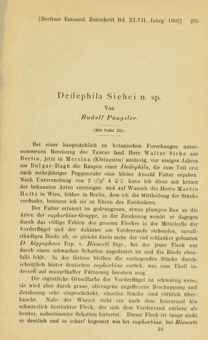 - Erstbeschreibung: Püngeler, R. (1903): Deilephila Siehei n. sp. — Berliner Entomologische Zeitschrift 47: 235-238, pl. III.