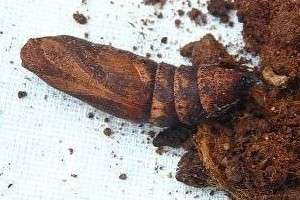 2.2. Puppe, Differenzialdiagnose Deilephila porcellus (links bzw. oben) und Deilephila elpenor (rechts bzw. unten)