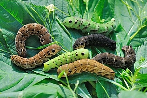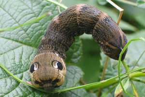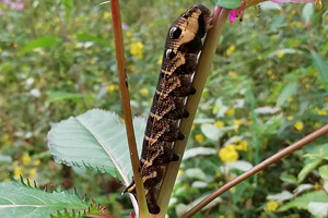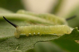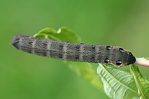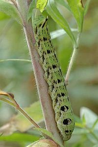 4: Jungraupe, 2cm, Deutschland, Rheinland-Pfalz, Westerwald, Montabaur, Hausgarten an Epilobium hirsutum, 16. Juli 2003 (Freilandfoto: Rainer Wendt)