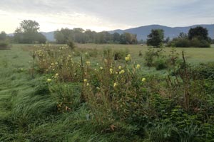 1: an diesem besonnten Teichufer mit Weidenröschen (Epilobium spec.) fand ich zwei Raupen. Die häufige Raupe ist nicht nur an offenen besonnten Stellen wie dieser zu finden, sondern auch in Wäldern an eher schattigen Stellen, dort z.B. auch am Indischen Springkraut: Schweiz, Basel Riehen, 270 m, 19. September 2010 (Foto: Florian Nantscheff)Forum