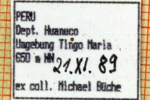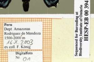 4: ♂, Peru, Junin, Chanchamayo, Pampa Hermosa Lodge, 1200 m, 18. Oktober 2011 (fot.: Priscilla & Hank Brodkin), Bild über Kim Garwood erhalten, det. Bernard Hermier
