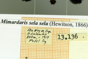 - Erstbeschreibung der Unterart Mimardaris sela peruviana: Draudt, M. (1921): Unterfamilie: Pyrrhopyginae Wts. — In: Seitz, A. (Hrsg.) (1907-1924): Die Gross-Schmetterlinge der Erde 5. Die Amerikanischen Tagfalter: 836-849, pl. 162-165.