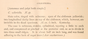 Chambers (1874: 128) schreibt über den Raupensack: “[...] and was found adhering to the bark of sugar trees (Acer saccharinum.)”