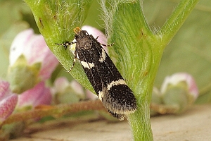Nach Gaedike & Heinicke (1999) in Deutschland nur aus Brandenburg und Sachsen bekannt (jeweils aktuell, d.h. nach 1980). Roweck & Savenkov (2013) ergänzen für Schleswig-Holstein: "Ritzerau, Wald: 06.07.2010, 1 Ex. in der Lichtfalle (Beleg in ECKU). Verbr.: Boreo-montane Art, die erst vor wenigen Jahren in DK (Bornholm. Lolland, Falster) nachgewiesen werden konnte und dort offenbar in Ausbreitung begriffen ist (Buhl 2005, Karsholt und Gregersen pers. Mitt.). Auf dem europäischen Festland nur im Südosten, PR, ES, BL und NI fehlend – in D bislang nur aus BB und SN bekannt. Larven an diversen Fabaceae (u. a. Lotus corniculatus, Trifolium repens, Vicia cracca)."