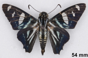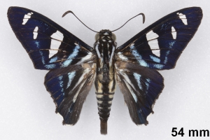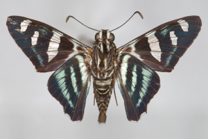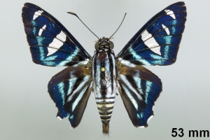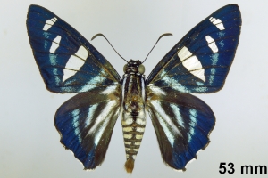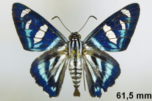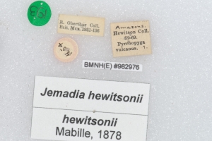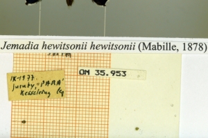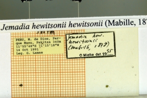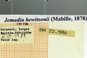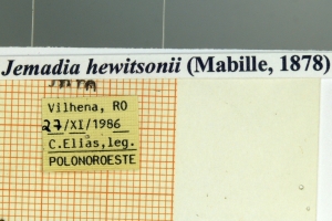 16-18: Paralectotypus ♂ von Jemadia lecerfi Mabille, 1912, Daten siehe Etiketten (fot.: Nick V. Grishin, Fotos bearbeitet: Michel Kettner), coll. Muséum national d'histoire naturelle. Paris.