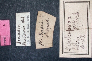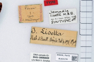 13-15: Lectotypus ♂ von Jemadia lisetta Mabille & Boullet, 1908, Daten siehe Etiketten (fot.: Nick V. Grishin, Fotos bearbeitet: Michel Kettner), coll. Muséum national d'histoire naturelle. Paris.
