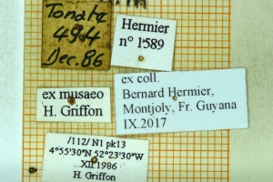 13-15: Paralectotypus ♀ von Jemadia lecerfi Mabille, 1912, Daten siehe Etiketten (fot.: Nick V. Grishin, Fotos bearbeitet: Michel Kettner), coll. Muséum national d'histoire naturelle. Paris.