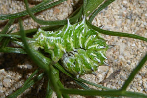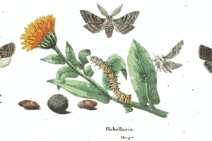 Die Raupe wird schon in der Erstbeschreibung von Heeger (1838) abgebildet mit Erläuterung: "Sie lebt in der Umgebung von Messina, im September, ausgewachsen auf Calendula officinalis, und nähret sich am liebsten von den Blüthenknospen." Bei Redondo et al. (2009) ist zu lesen: "La oruga se alimenta de Calendula, Senecio y Chrysanthemum, aunqué también se ha criado sobre Rumex pulcher (Priore, 1967)." Bei Senecio und Chrysanthemum könnte es sich um typische Futterpflanzen für die Zucht handeln - ob es dazu auch Freilandfunde gibt, ist mir unklar. Auf der Artseite auf [leps.it] heißt es lapidar: "Foodplants: Taraxacum, Senecio" - beim Löwenzahn dürfte es sich dabei ziemlich sicher um eine reine Futterpflanze für die Zucht handeln.