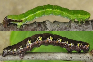 Schönborn (2011) führt für Sachsen-Anhalt auch Schlehe (Prunus spinosa) als Raupennahrung an, was ausgeschlossen sein dürfte – erfahrungsgemäß werden Kreuzdorn-Büsche von Entomologen aber oft als Schlehe fehlbestimmt. Schon Lampert (1907) hatte geschrieben: „Im Mai auf Schlehen (Prunus spinosa L.) und Faulbaum (Rhamnus L.).“ Ob seine Raupenbeschreibung wirklich zu dieser Art passt, ist aber fraglich: „Raupe dunkelbraun, mit hellen Seitenflecken und roten Schrägstrichen“ – leider wird sie nicht abgebildet.