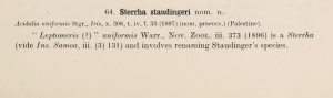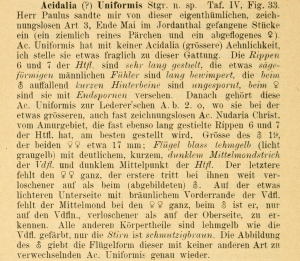 - Beschreibung als Acidalia uniformis: Staudinger, O. (1898): Neue Lepidopteren aus Palaestina. — Deutsche Entomologische Zeitschrift Iris 10 (2): 271-319, pl. IX.