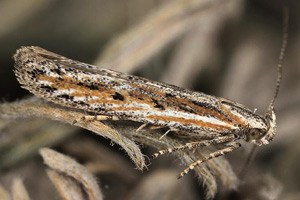 Bei Huemer & Karsholt (2010: 198) ist zu lesen: "The larva has been recorded mining the leaves of Erigeron L. (Asteraceae) and spinning them together. Pupation took place between spun leaves or tissue in the laboratory (Huemer, pers. obs.) Schmid (in litt.) found the larva feeding gregariously between spun leaves of Artemisia umbelliformis Lam. (Asteraceae).