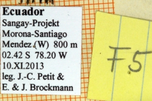 1-3: Paratypus ♀, Daten siehe Etiketten (fot.: Ernst Brockmann, Fotos bearbeitet: Michel Kettner), coll. Departamento de Zoologia, Universidade Federal do Paraná, Curitiba, Paraná, Brazil.