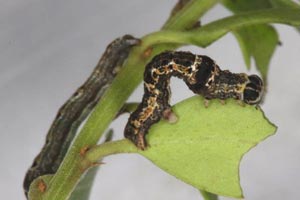 Nach Seliger & Hemmersbach (2018) wurden Raupen dieser ostasiatischen Art in einem Mönchengladbacher Gartencenter an Japanischer Stechpalme (Ilex crenata) und Ilex maximowicziana 'Kanehirae' ("im Handel oft als "Ilex 'Impala'" bezeichnet) gefunden. Sie fraßen dort stets frische, noch weiche Blättchen. Ilex crenata gilt auch in Ostasien als die übliche Nahrungspflanze der Art. Dort werden in geringerem Umfang noch weitere Ilex-Arten genutzt, angeblich - aber wenig glaubhaft - auch die in eine ganz andere Familie gehörende Japanische Zelkove (Zelkova serrata).