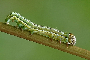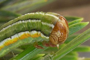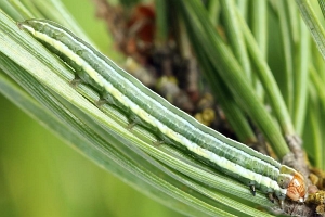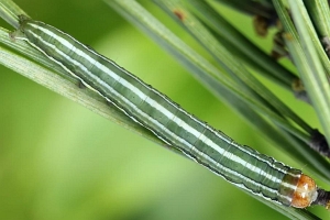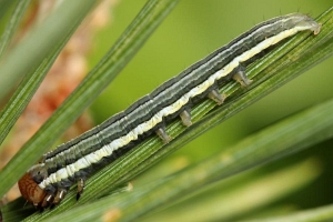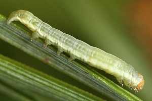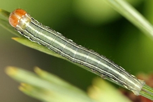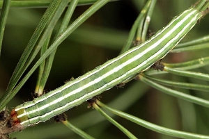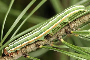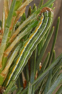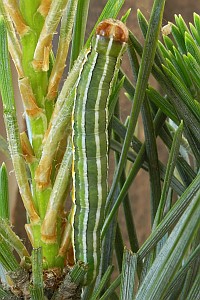 1-2: Deutschland, Sachsen, Dübener Heide, Umg. Laußig, Raupe an Kiefer 20. Mai 2012 (leg., cult., det. & Fotos am 1. Juli 2012: Heidrun Melzer)