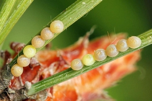 14-16: Vorletztes Stadium: Deutschland, Sachsen, Dübener Heide, Umg. Laußig, an Kiefer, 20. Mai 2012 (leg., cult., det. & Fotos: Heidrun Melzer)