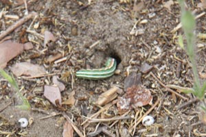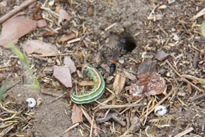 4: Sandwespe zieht Raupe in das LOch, Deutschland, Rheinland-Pfalz, Umgebung Mainz, Naturshutzgebiet Mainzer Sand, 26. Mai 2020 (det. & fot.: Martine Goerigk)Forum