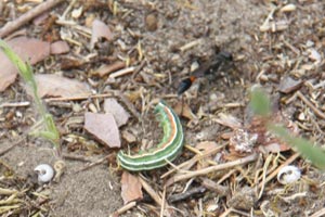 1: Sandwespe schleppt Raupe über den Boden, Deutschland, Rheinland-Pfalz, Umgebung Mainz, Naturshutzgebiet Mainzer Sand, 26. Mai 2020 (det. & fot.: Martine Goerigk)Forum