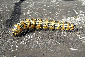 1: auf dem Weg zur Verpuppung, Deutschland, Schleswig-Holstein, Nordfriesland, Insel Föhr, Klein-Dunsum, 14. August 2003 (Freilandfoto: Jürgen Rodeland)