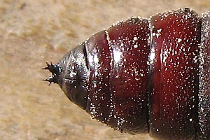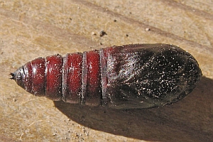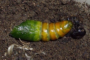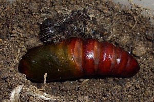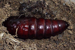 14: Präpupa: Deutschland, Bayern, Südbayern, Graswangtal bei Ettal, Schloss Linderhof, 940 m, Fund bei Erdarbeiten, 9. Oktober 2008 (Foto: Bernhard Bous), det. Erwin Rennwald, conf. Markus KnustForum