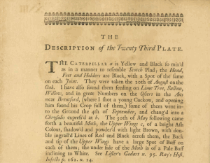 - Bezug einer Indikation in der Erstbeschreibung: Albin, E. (1720): A Natural History of English Insects. Illustrated with A Hundred Copper Plates, Curiously Engraven from the Life: And (for those who desire it) Exactly Coloured by the Author: [I]-[XIII], not paginated text page for each plate, pl. I-C. London.