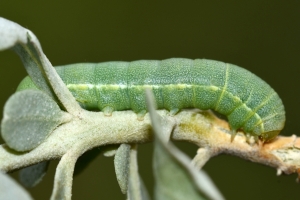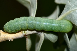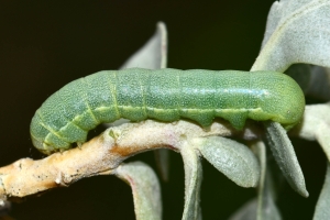 9-12: Frankreich, Département Bouches-du-Rhône, Port-Saint-Louis-Du-Rhône, 2 m, Raupe auf Strauch-Melde (Atriplex halimus), e.l. 30. Juni 2023 (leg., cult. & fot.: Edith Grange), det. Jean-Charles Grange