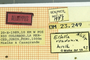 1-3: Holotypus ♂, Daten siehe Etiketten (fot.: Ernst Brockmann, Fotos bearbeitet: Michel Kettner), coll. Departamento de Zoologia, Universidade Federal do Paraná, Curitiba, Paraná, Brazil.