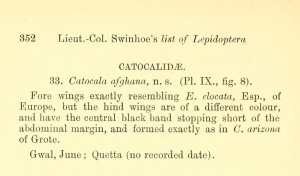 - Erstbeschreibung: Swinhoe, C. (1885): List of Lepidoptera collected in Southern Afghanistan. — The Transactions of the Entomological Society of London für the Year 1885 (3): 337-355, pl. IX.